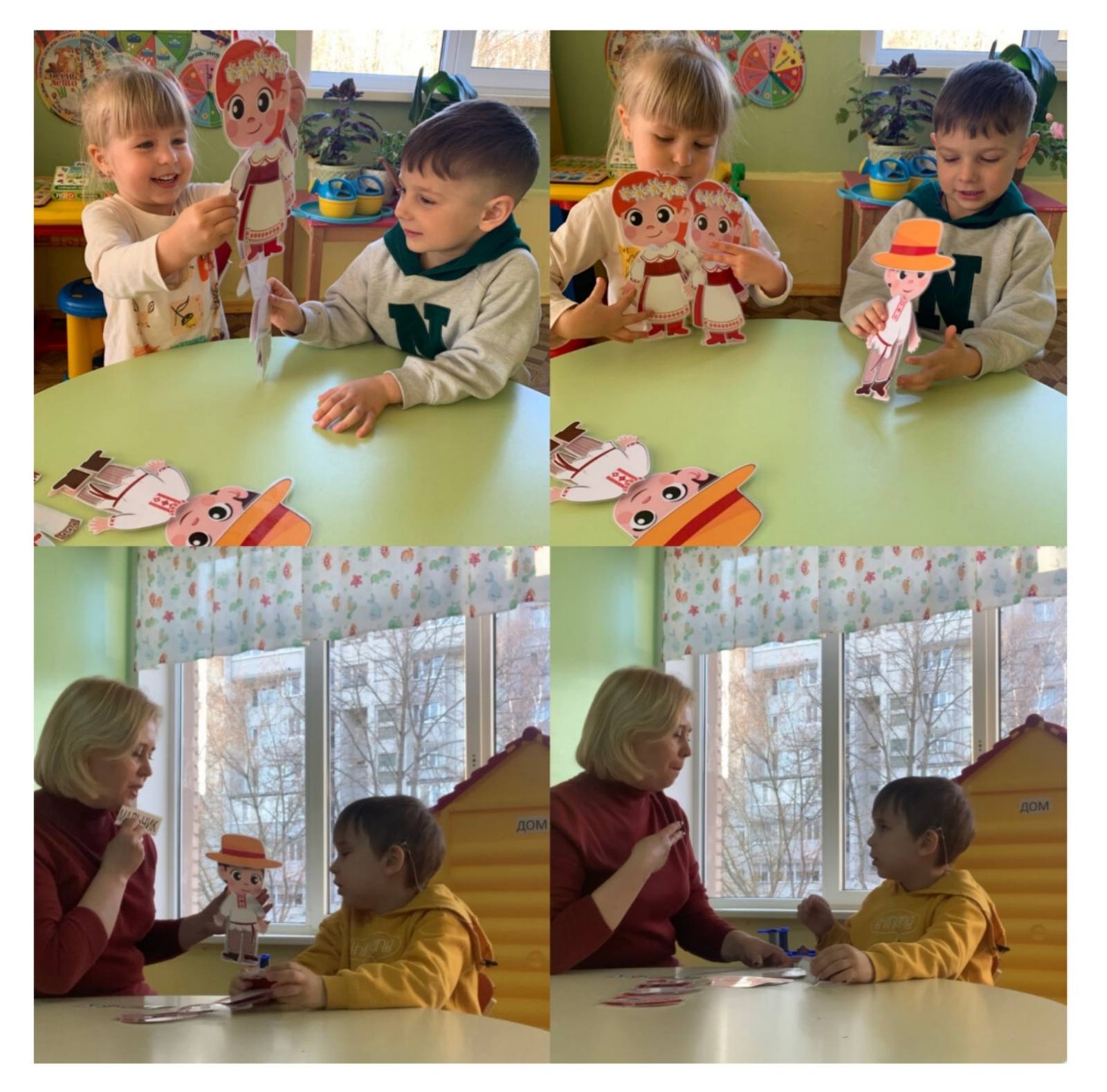 Настольно-печатные игры — это ярко, интересно, увлекательно, полезно! В игре с воспитанниками группы интегрированного обучения и воспитания 11 не только закрепляем последовательность одевания и названия предметов одежды, но и формируем представление о белорусском национальном костюме, знакомим с белорусским орнаментом. У воспитанников с нарушением слуха игра способствует самоидентификации ( мальчик, девочка), социализации , формированию уважения к противоположному полу, закладываются основы гендерной культуры.